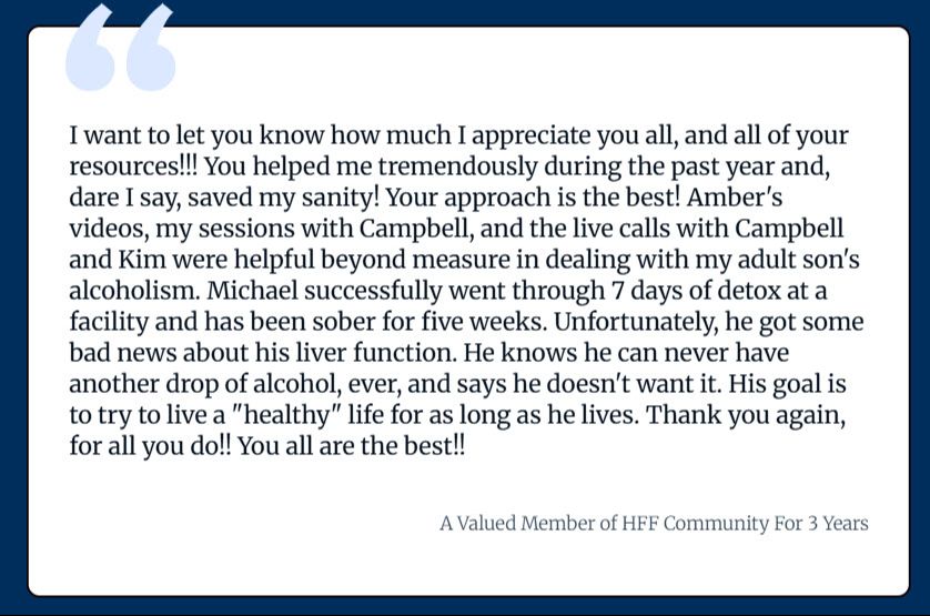 Advanced training for parents and partners, plus weekly live coaching calls with family recovery experts.